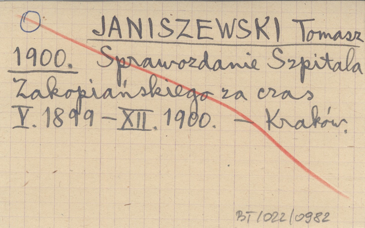JANISZEWSKI Tomasz 1900 Sprawozdanie Szpitala Zakopiańskiego za czas V.1899-XII.1900.