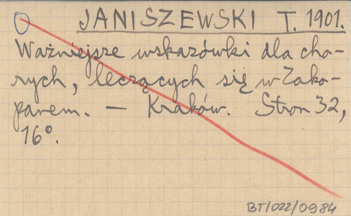 JANISZEWSKI T. 1901 Ważniejsze wskazówki dla chorych, leczących się w Zakopanem.