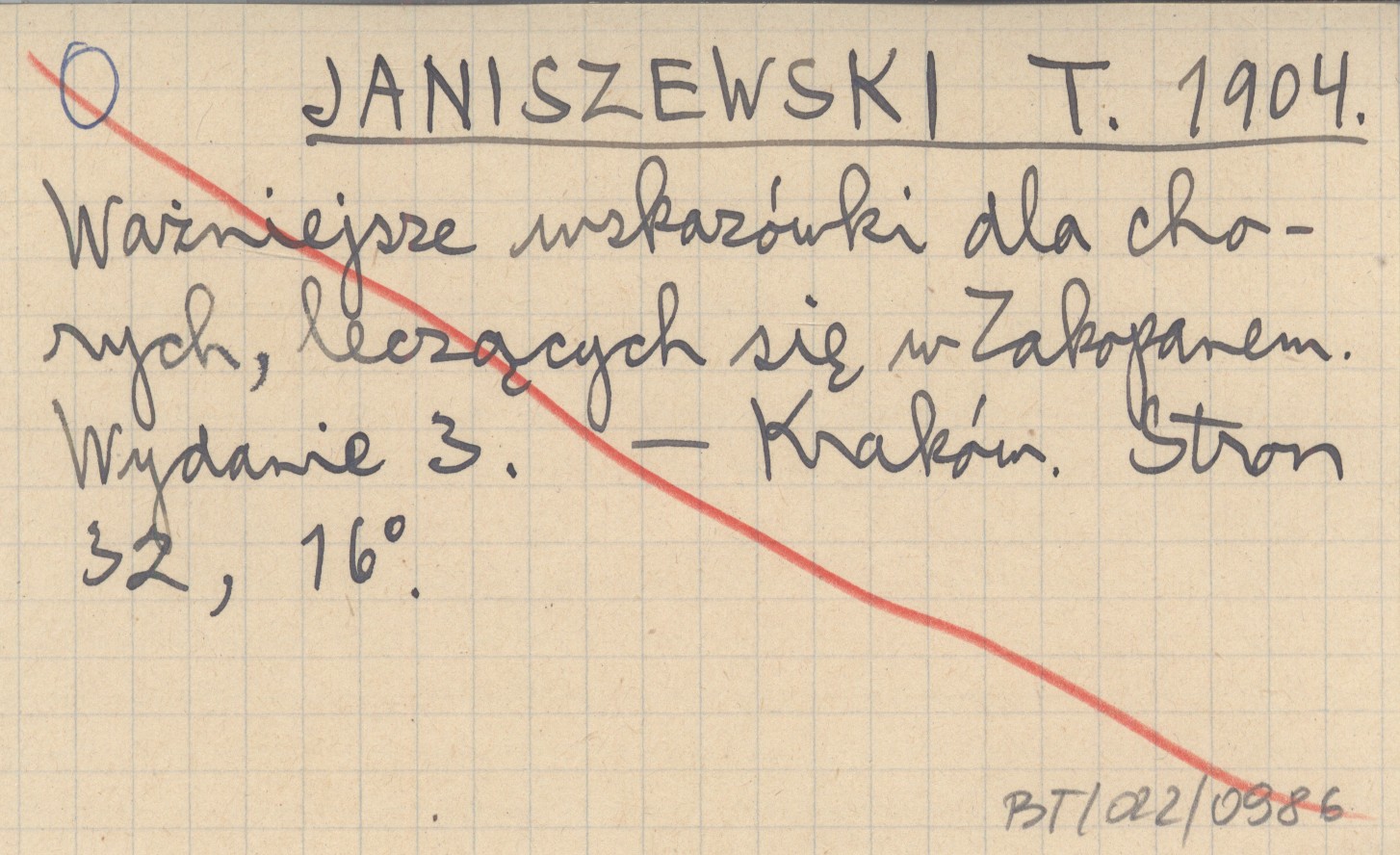 JANISZEWSKI T. 1904 Ważniejsze wskazówki dla chorych, leczących się w Zakopane.