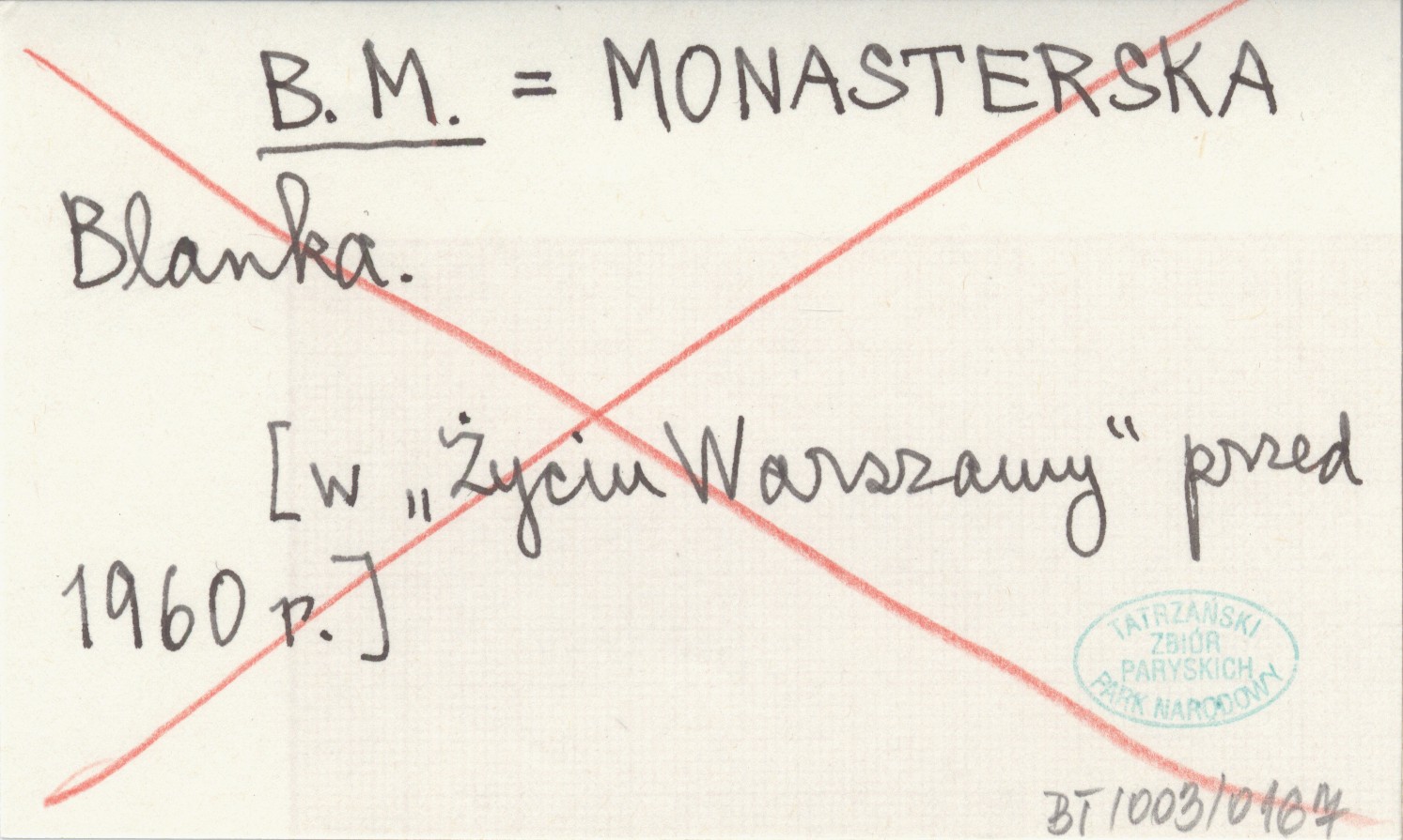 B. M. MONASTERSKA Blanka Życie Warszawy [przed 1960 r.].