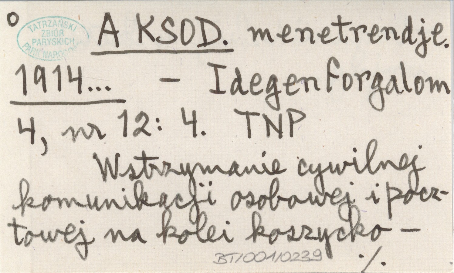 Idegenforgalom, 4, nr 12: 4. Wstrzymanie cywilnej komunikacji osobowej i pocztowej na kolei koszycko - bogumińskiej wskutek wojny.