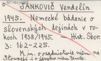 JANKOVIČ Vendelín 1945 Nemecké bádanieo slovenských dejinách v rokoch 1938/1945.