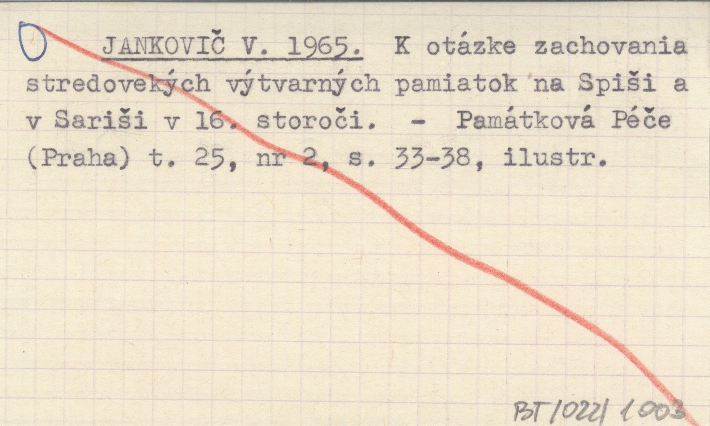 JANKOVIÈ V. 1965 K otázke yachovania stredovekęch vętvarnęch pamiatok na Spiči a v Sariči v 16. storoèi.