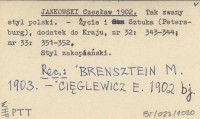 JANKOWSKI Czesław 1890 Ze sztuki.