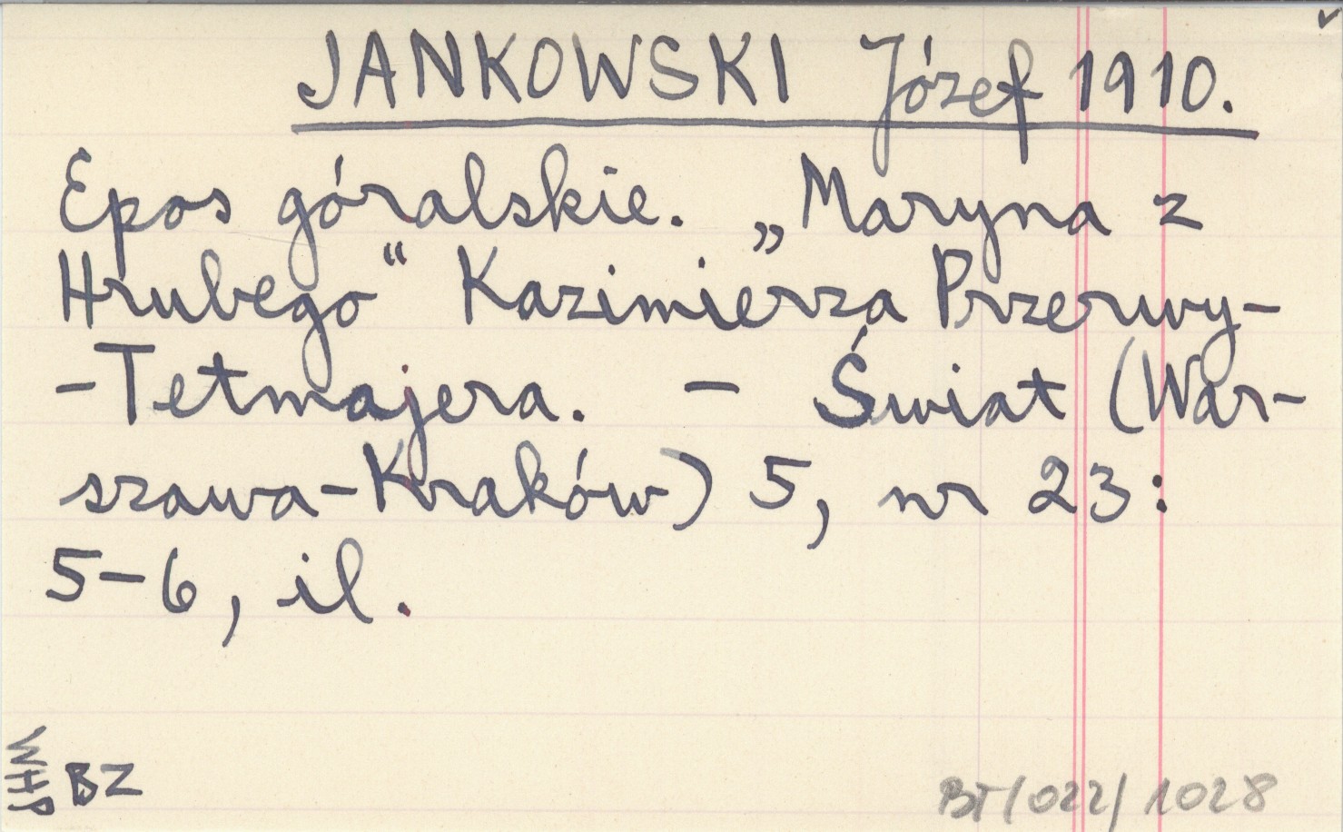 JANKOWSKI Józef 1910 Epos góralskie. "Maryna z Hrubego" Kazimierza Przerwy-Tetmajera.