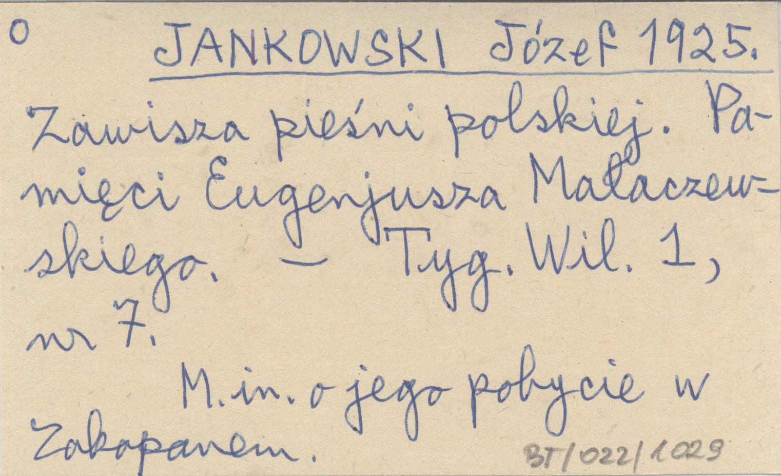 JANKOWSKI Józef 1925 Zawisza pieśni polskiej. Pamięci Eugeniusza Małaczewskiego.