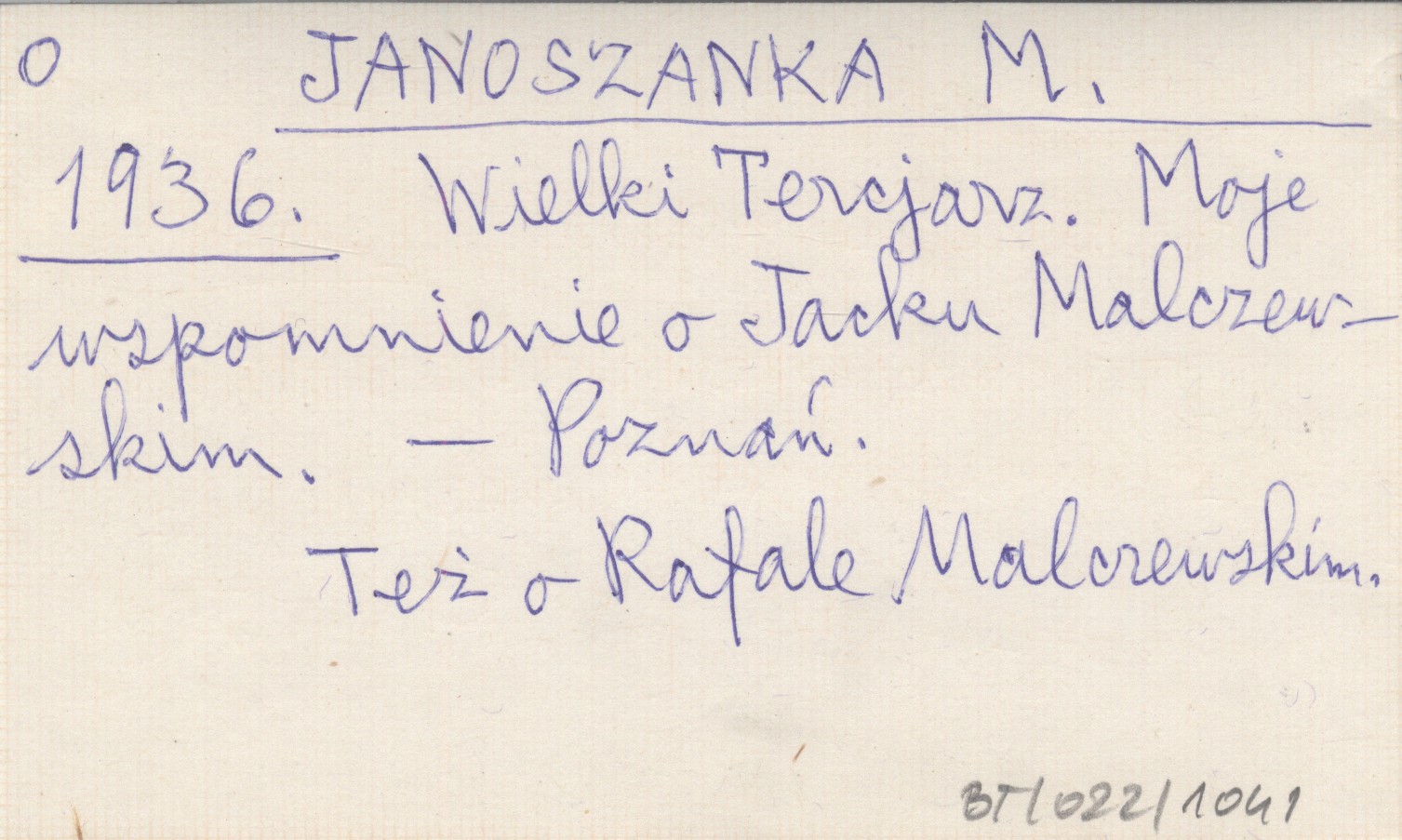 JANOSZANKA M. 1936 Wielki Tercjarz. Moje wspomnienie o Jacku Malczewskim.