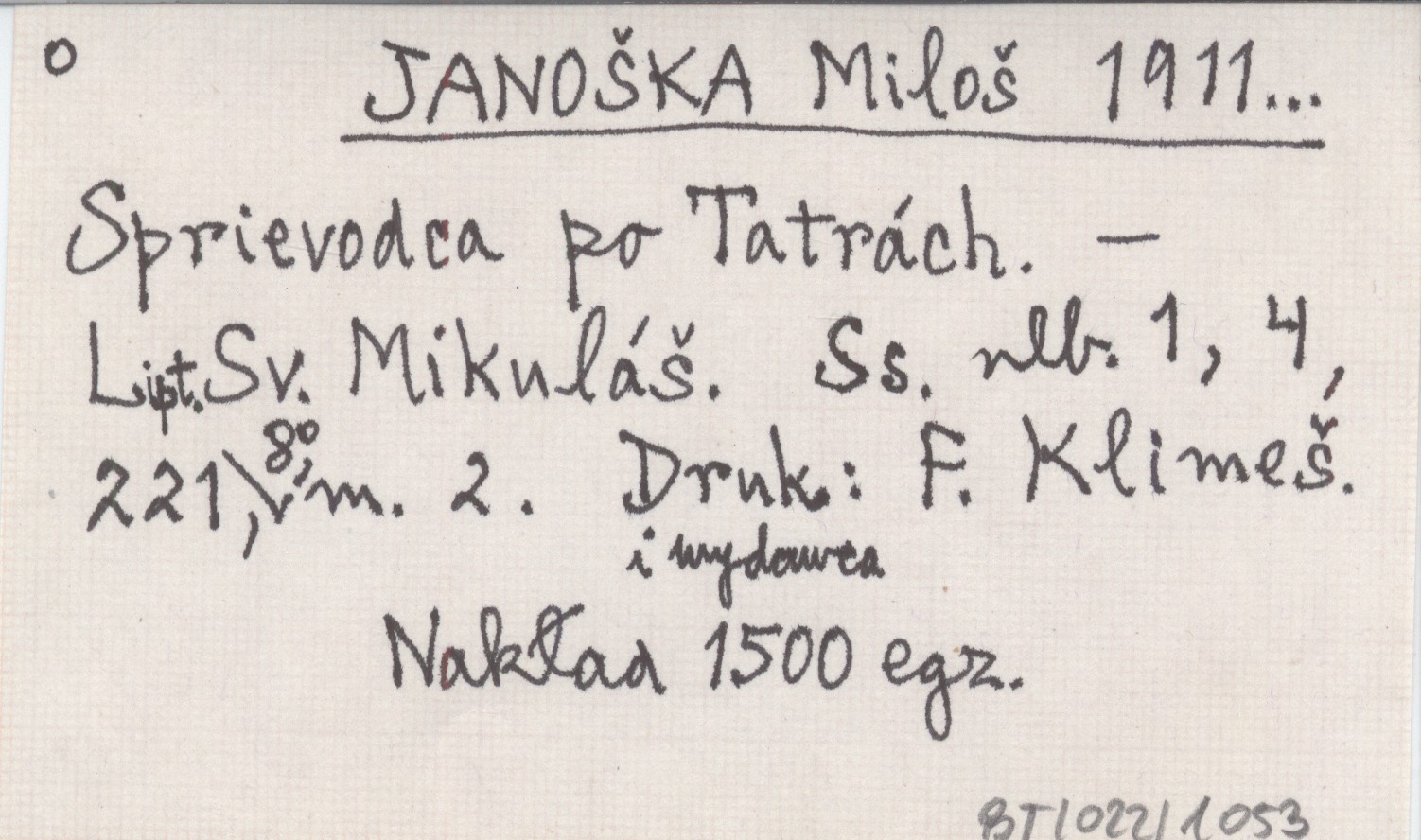 F. Klimeč (druk i wydawca), Liptovskę Svätę Mikuláč , [1] s., 4, 221, 8°, 2 m. Nakład 1500 egzemplarzy.