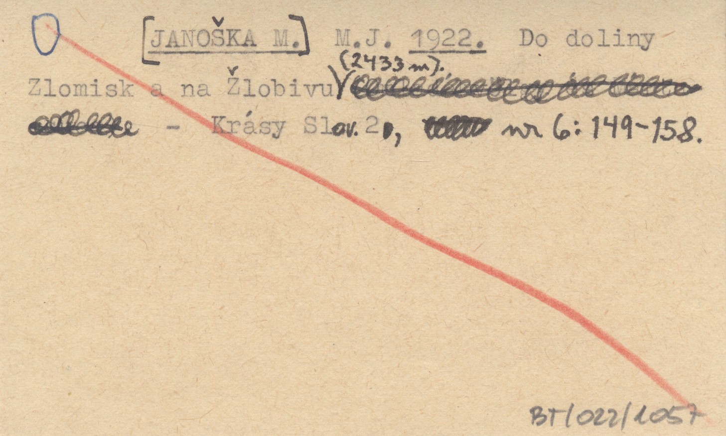 M. J. [JANOŠKA M.] 1922 Do doliny Zlomisk a na Žlobivu (2433 m).
