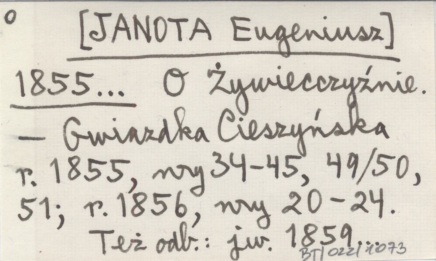 Gwiazdka Cieszyńska, R. 1855, nr 34-45, 49/50, 51; r. 1856, nr 20-24. Też odb.: jw. 1859.
