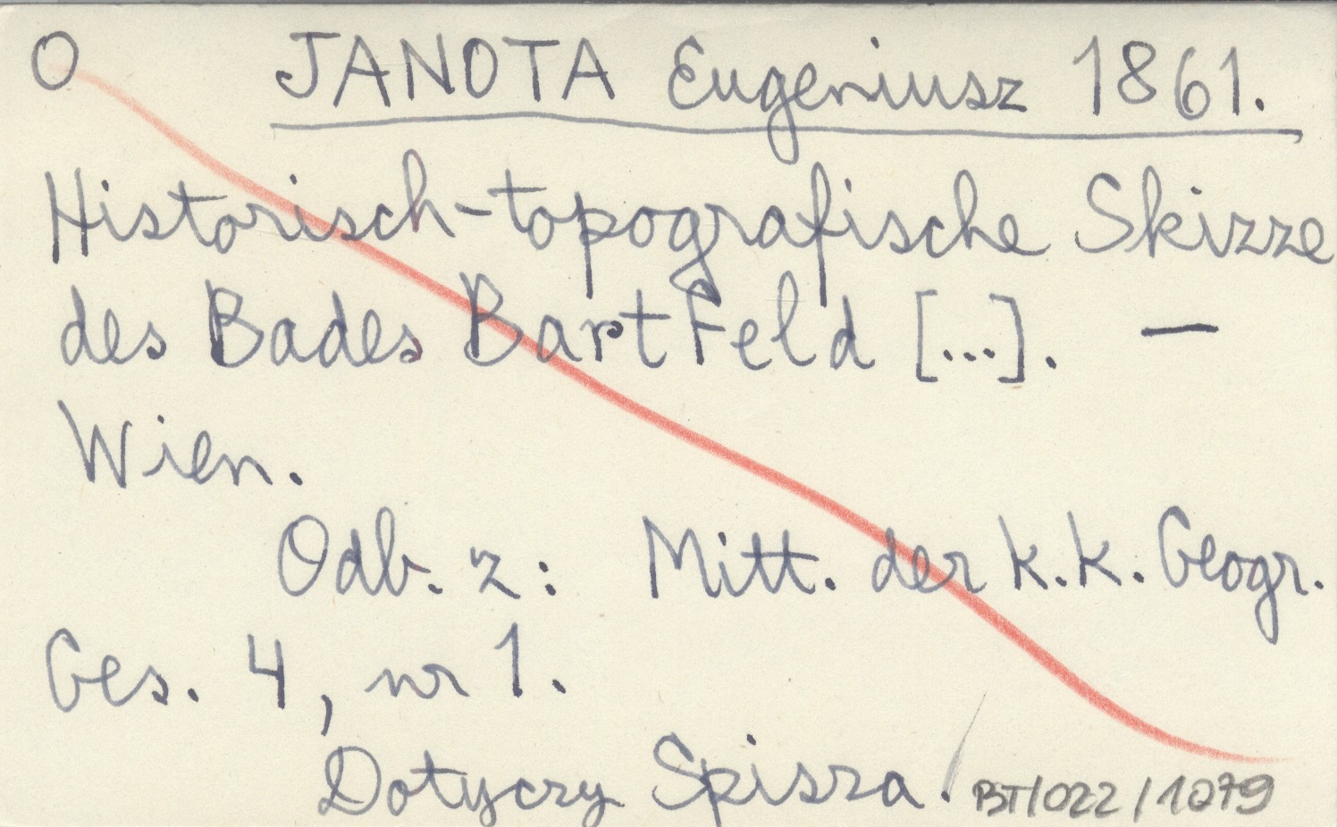JANOTA Eugeniusz 1861 Jistorisch-topografische Skizze des Bades Bartfeld [...].