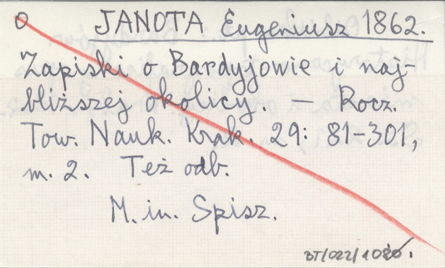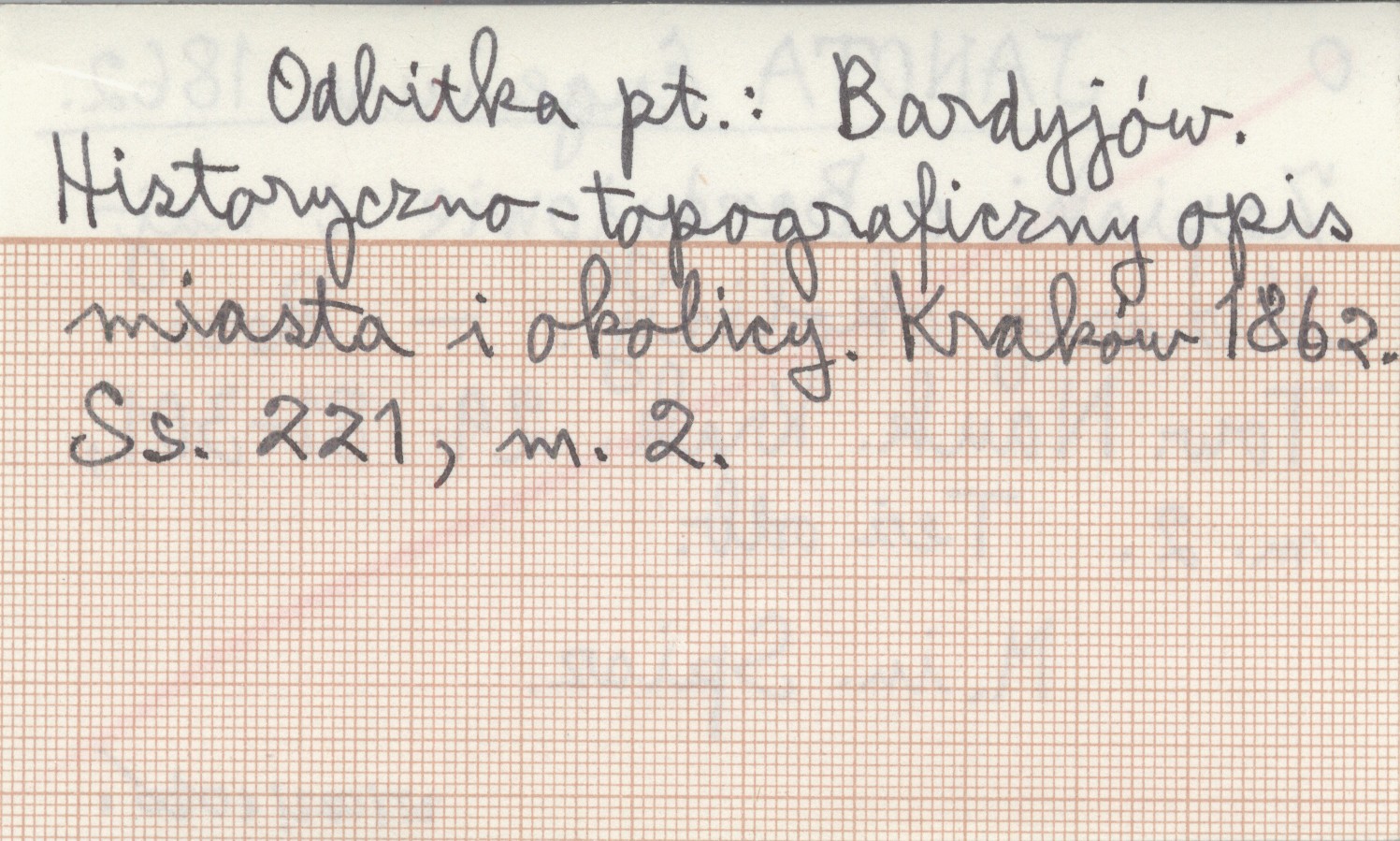 Rocznik Towarzystwa Naukowego Krakowskiego, 29: 81-301, 2 m. M. in. Spisz. Też odb. Odbitka pt.: Bardyjów. Historyczno-topograficzny opis miasta i okolicy. Kraków 1962. 221 s., 2 m.