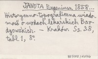 JANOTA Eugeniusz 1858... Historyczno-topograficzna wiadomość o wodach lekarskich Bardyowskich.