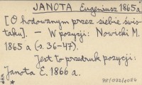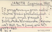JANOTA Eugeniusz 1860 a? [O przygotowanym przez siebie zbiorze pieśni podhalańskich i o innych swych pracach].