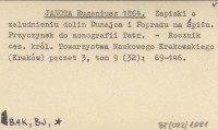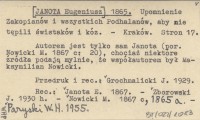 JANOTA Eugeniusz 1864 Zapisko o zaludnieniu dolin Dunajca i Popradu na Śpiżu. Przyczynek do monografii Tatr.
