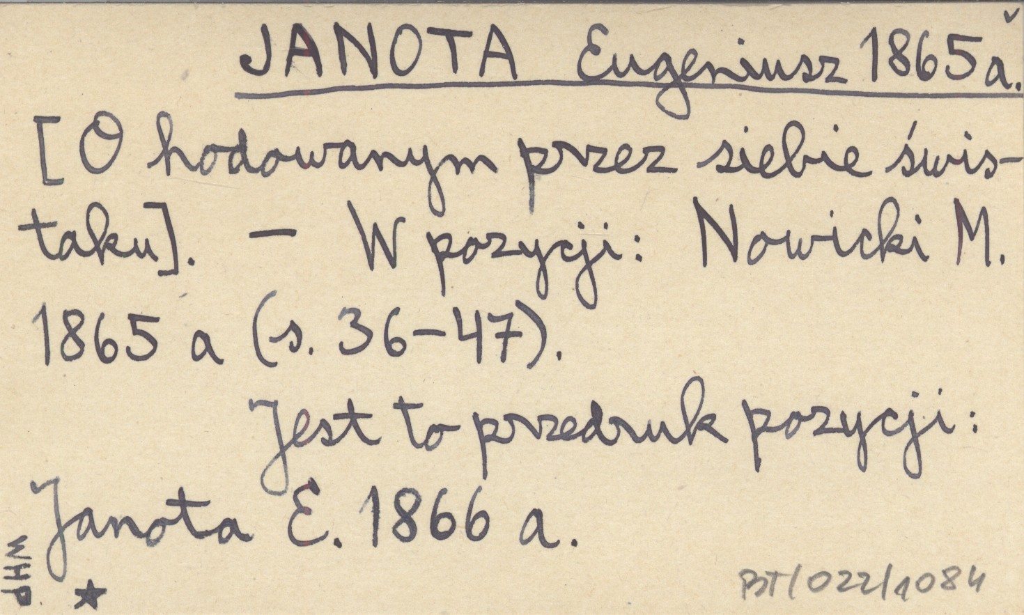 JANOTA Eugeniusz 1865 a [O hodowanym przez siebie świstaku].
