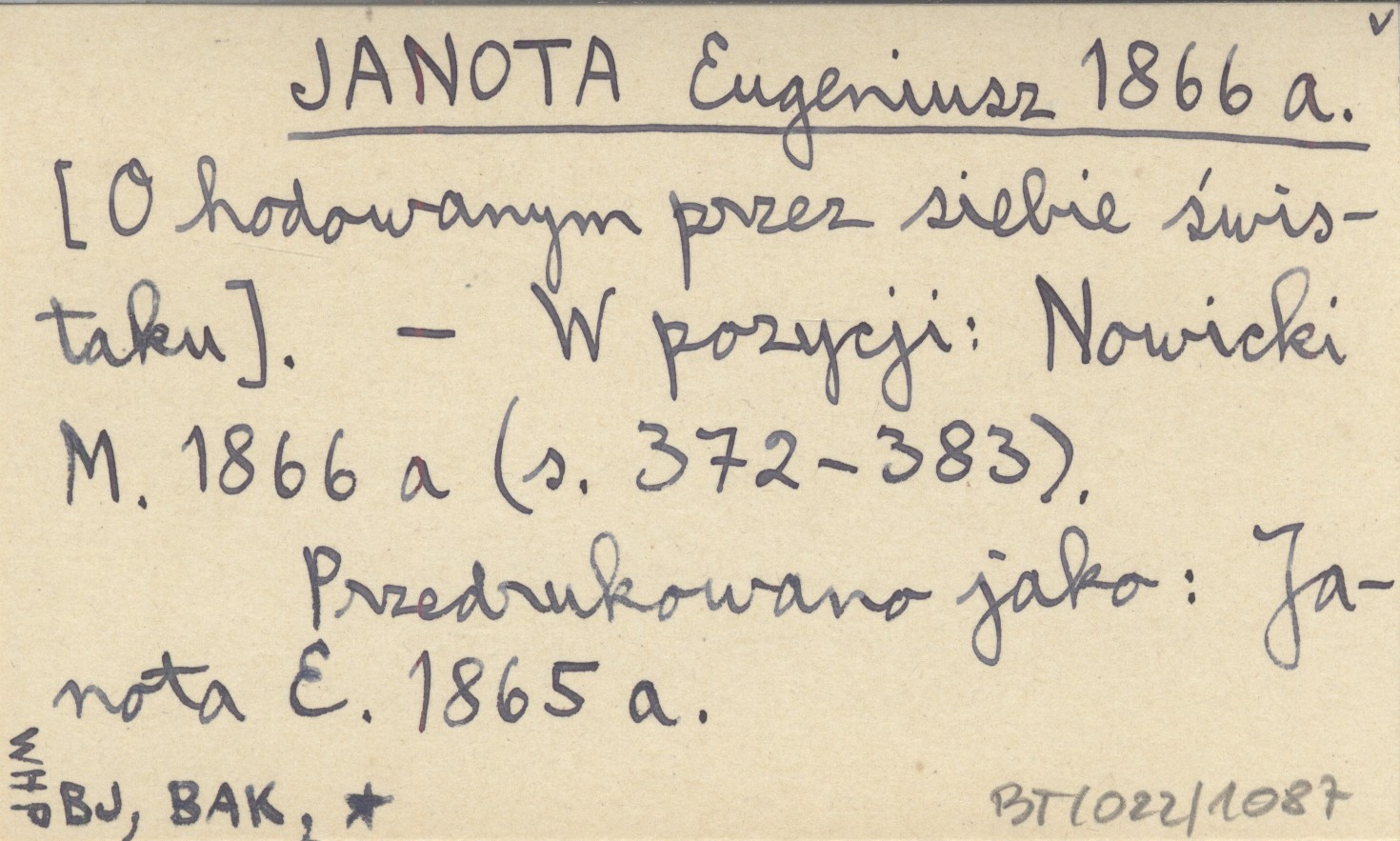 JANOTA Eugeniusz 1866 a [O hodowanym przez siebie świstaku].