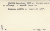 [JANOTA Eugeniusz] 1867 a Sprawa ochrony zwierząt.