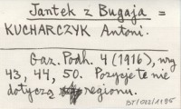 Jantek z Bugaja KUCHARCZYK Antoni Gazeta Podhalańska 4 (1916), nr 43, 44, 50. Pozycje te nie dotyczą regionu.