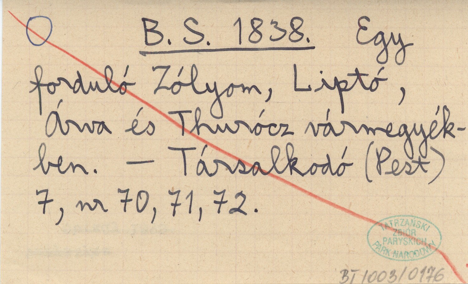 B. S. 1838 Egy forduló Zólyom, Liptó, Árva és Thurócz vármegyékben.
