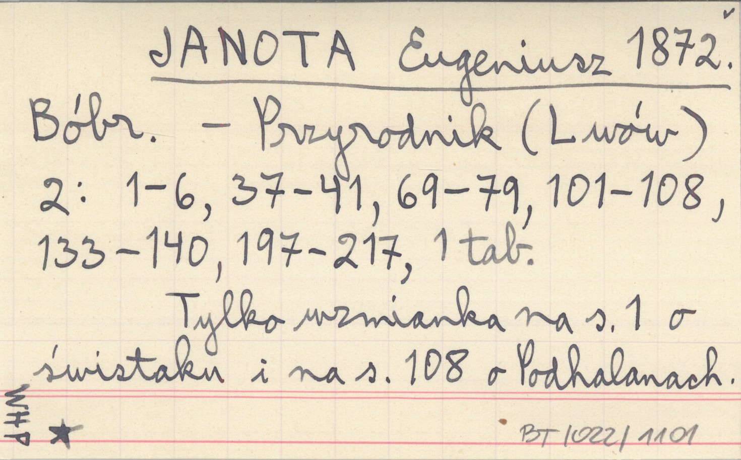 Przyrodnik (Lwów) , 2: 1-6, 37-41, 69-79, 101-108, 133-140, 197-217, 1 k. Tylko wzmianka na S. 1 o świstaku i na S. 108 o Podhalanach.