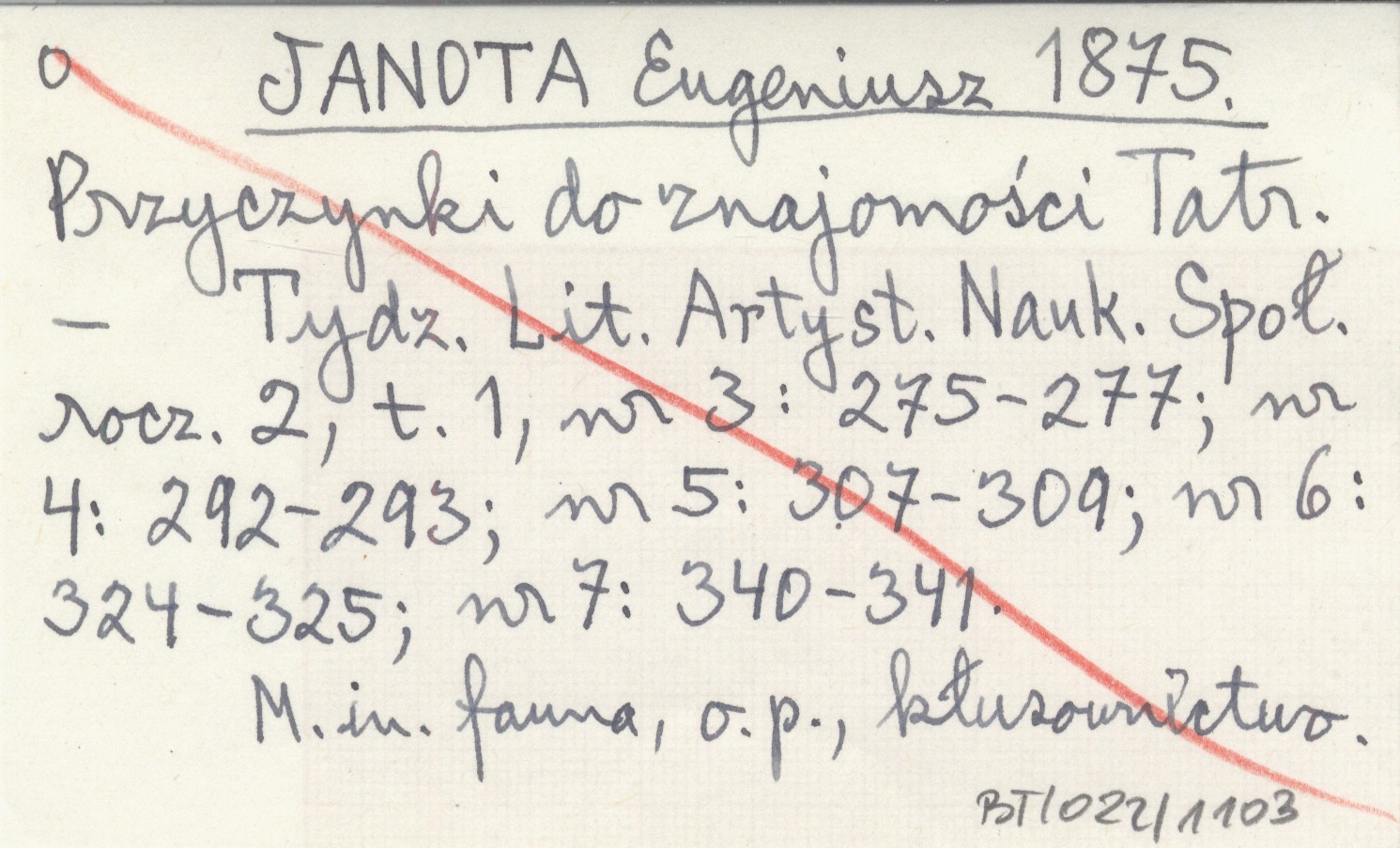 JANOTA E. 1874-1875 Przyczynki do znajomości Tatr.