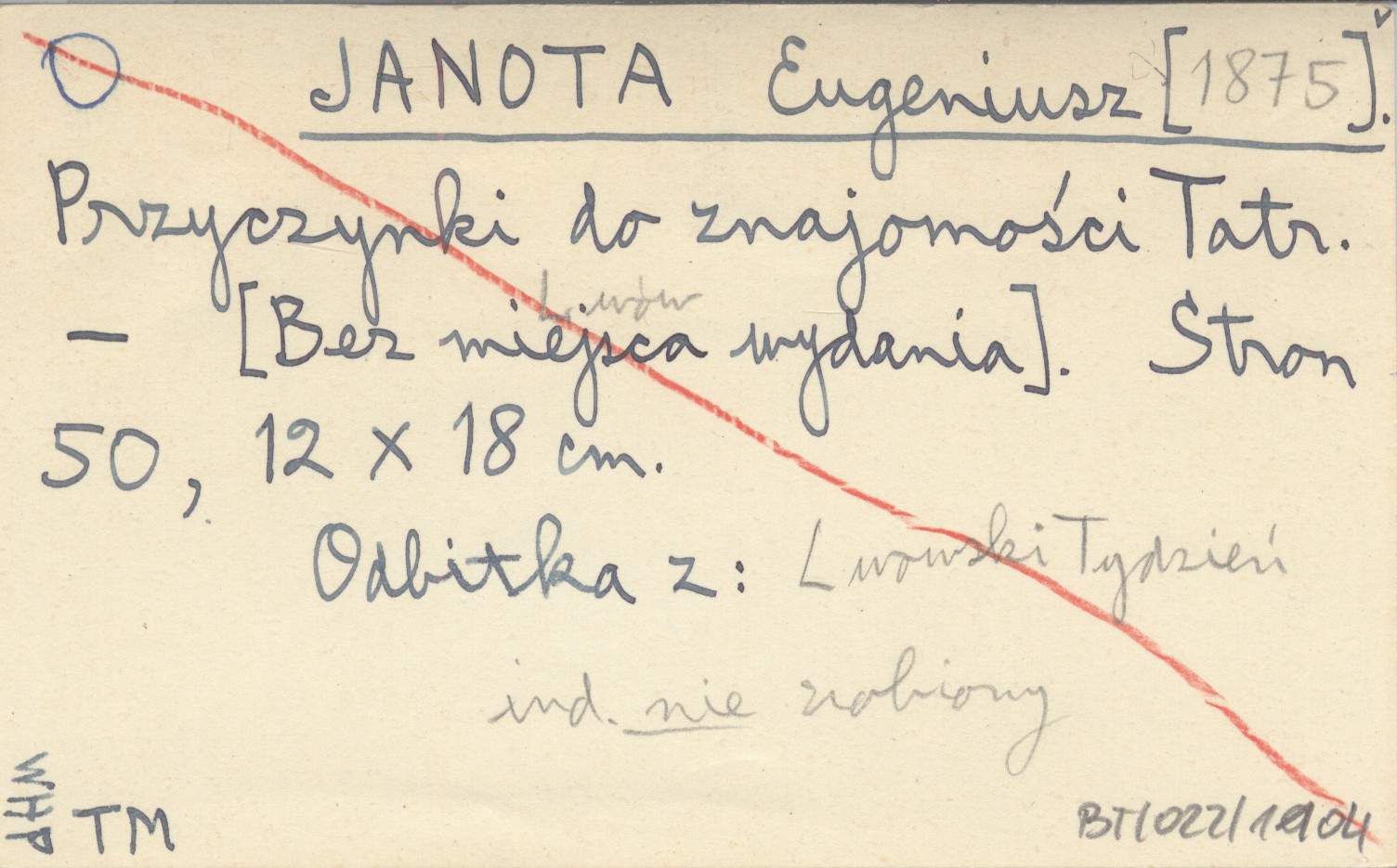 JANOTA Eugeniusz [1875] Przyczynki do znajomości Tatr.