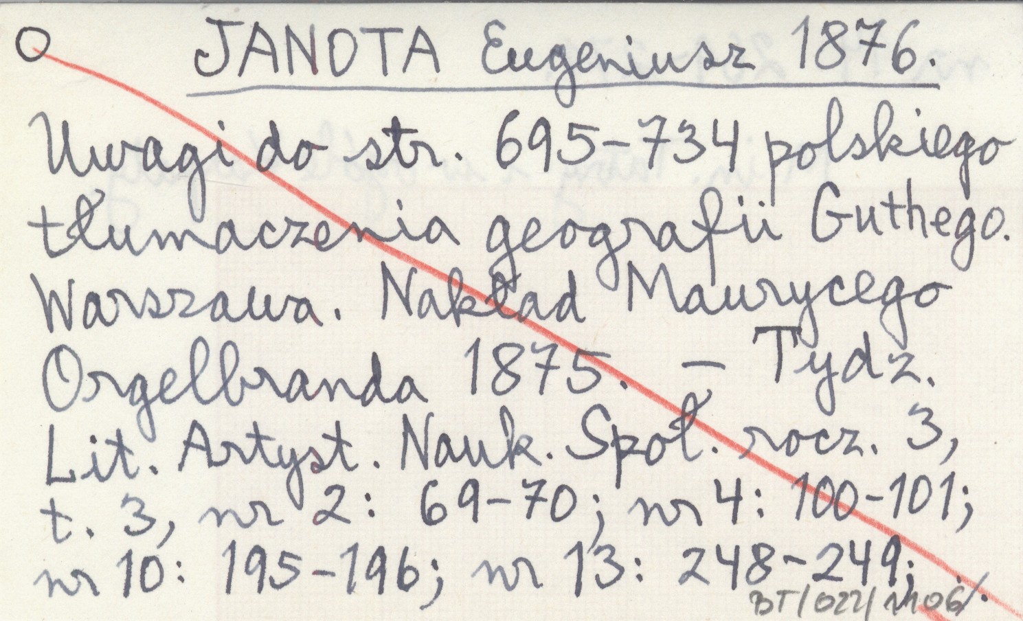 JANOTA Eugeniusz 1876 Uwagi do Str. 695-734 polskiego tłumaczenia geografii Guthego. Warszawa. Nakład Maurycego Orgelbranda 1875.