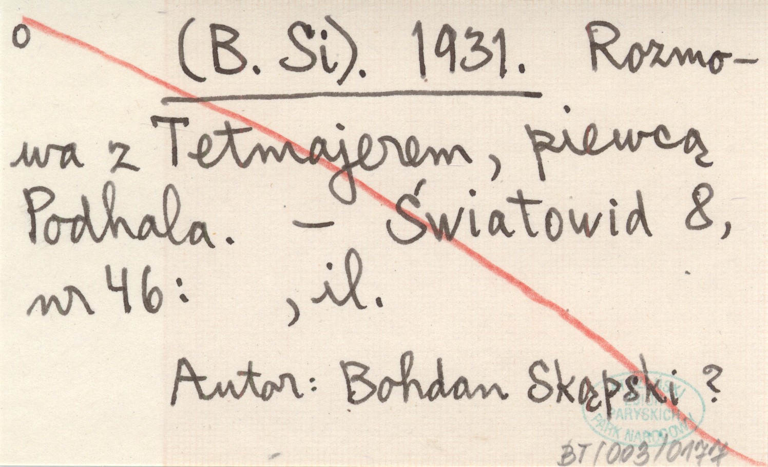 (B. Si) 1931 Rozmowa z Tetmajerem, piewcą Podhala.