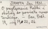 JANOTA Jan 1931... O przyłączenie Rabki i okolicy do powiatu nowotarskiego.