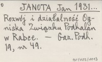 JANOTA Jan 1931... Rozwój i działalność Ogniska Związku Podhalan w Rabce.