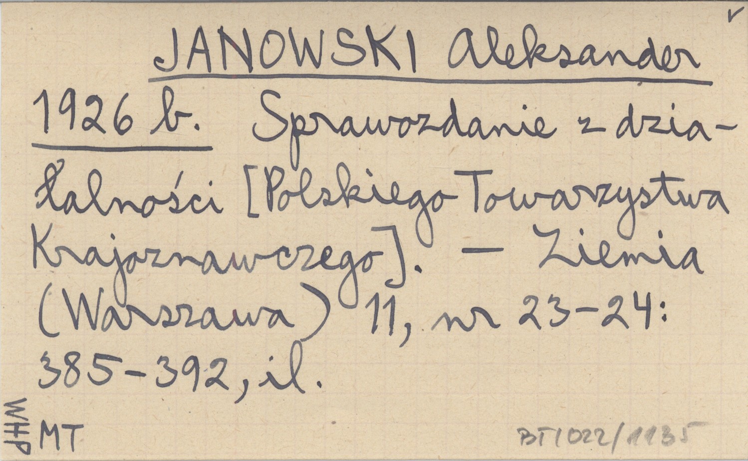 JANOWSKI Aleksander 1926 b Sprawozdanie z działalności [Polskiego Towarzystwa Krajoznawczego].