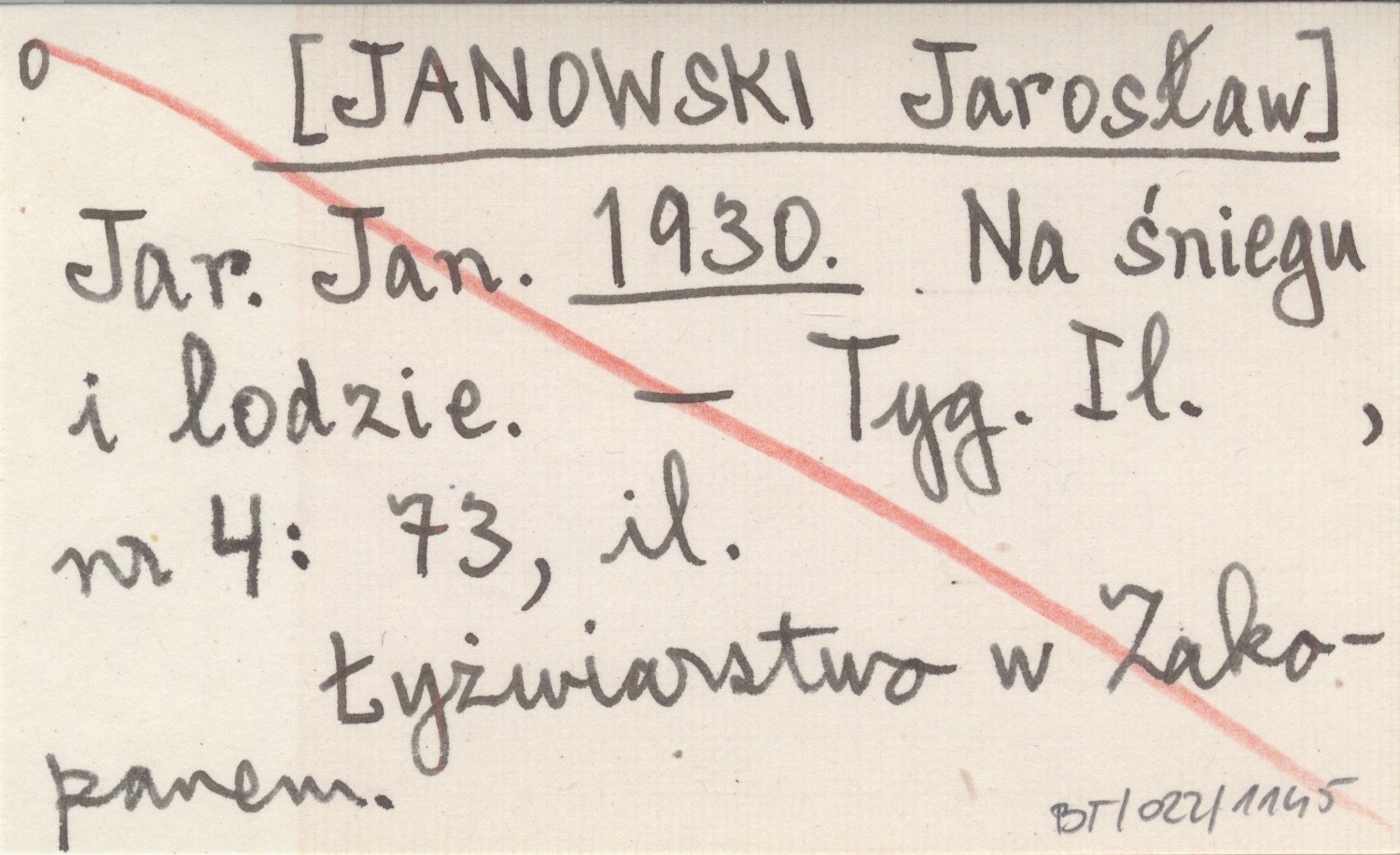 Jar. Jan. [JANOWSKI Jarosław] 1930 Na śniegu i lodzie.