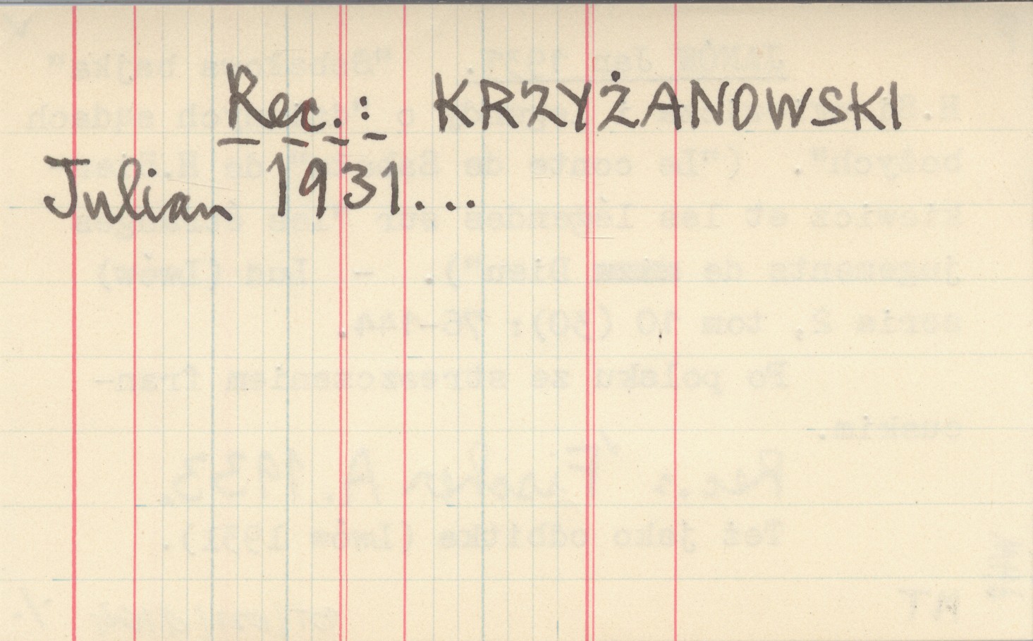 Lud (Lwów) , Ser. 2, t. 10 (30): 76-144. Po polsku ze streszczeniem francuskim. Też jako odbitka (Lwów 1931). REC: Fischer A. 1933 ; KRZYŻANOWSKI Julian 1931... ;
