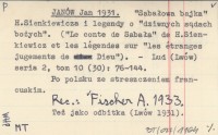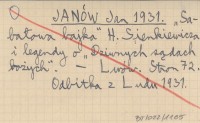 JANÓW Jan 1931 "Sabałowa bajka" H. Sienkiewicz i legendy o "Dziwnych s±dach bożych".