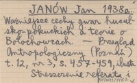 JANÓW Jan 1938 a Ważniejsze cechy gwar huculsko-pokuckich a teorie o Bołochowcach.