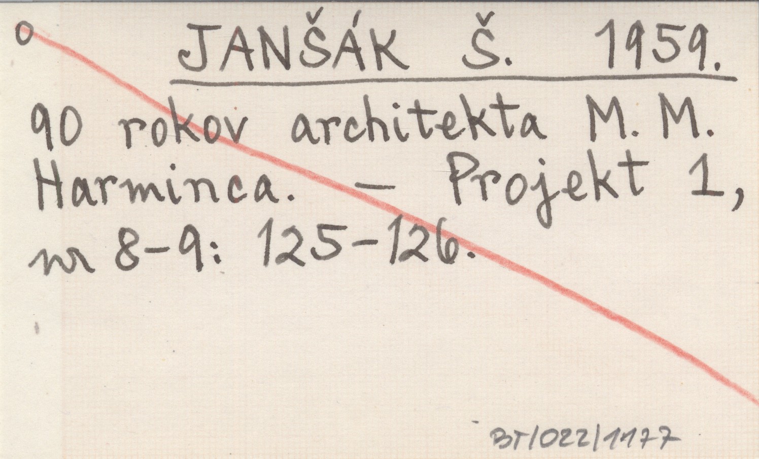 JANŠÁK Š. 1959 90 rokov architekta M. M. Harminca.