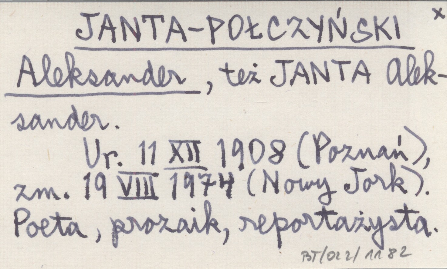 Ur. 11 XII 1908 (Poznań), zm. 19 VIII 1974 (Nowy Jork). Poeta, prozaik, reportażysta.