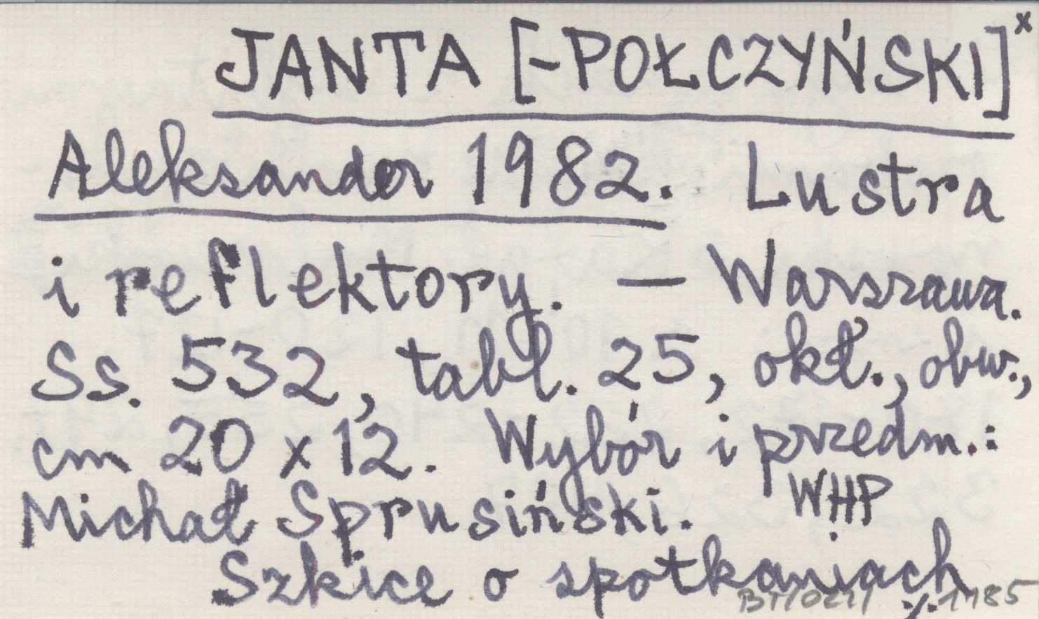 JANTA [-POŁCZYŃSKI] Aleksander 1982 Lustra i reflektory.