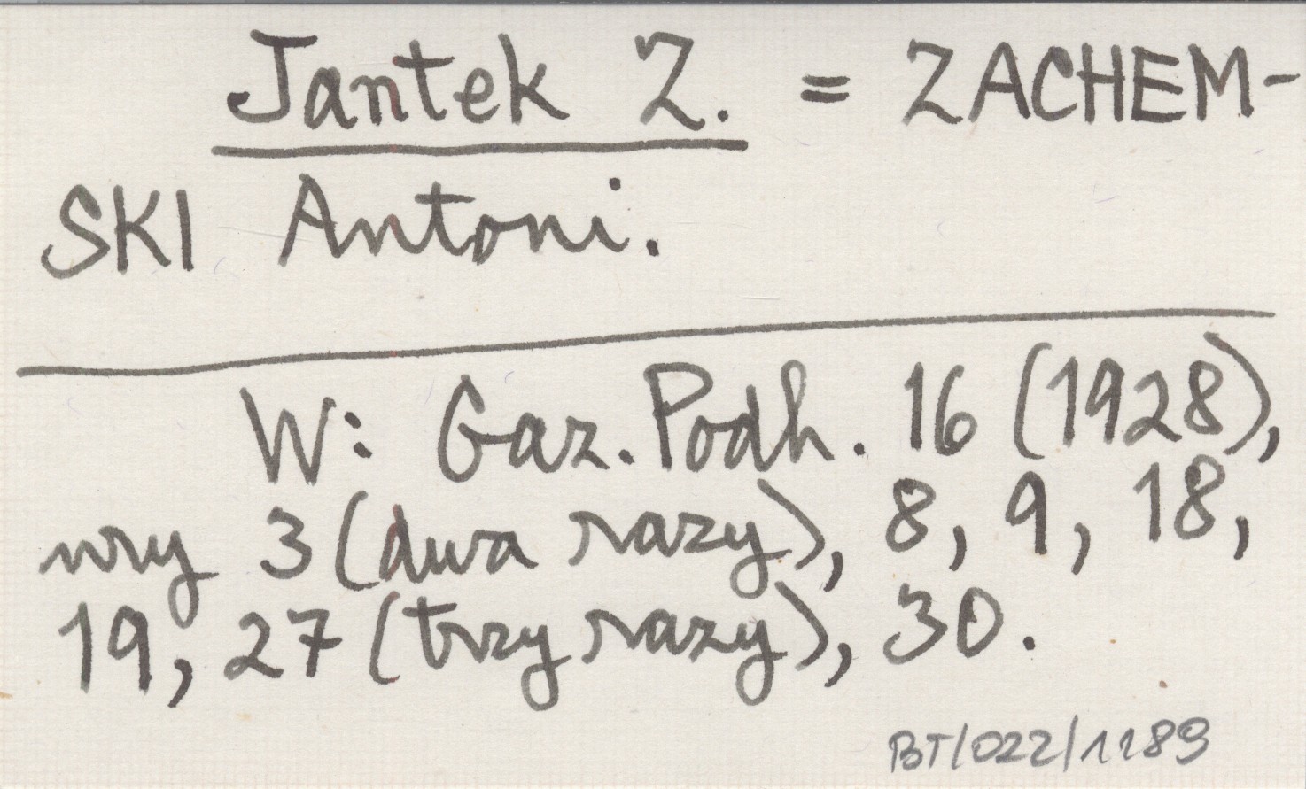 Jantek Z. ZACHEMSKI Antoni Gazeta Podhalańska 16 (1928), nr 3 (2x), 8, 9, 18, 19, 27 (3x), 30.