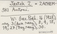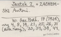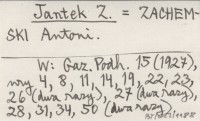 Jantek Z. ZACHEMSKI Antoni Gazeta Podhalańska 15 (1927), nr 4, 8, 11, 14, 19, 22, 23, 26 (2x), 27 (2x), 28, 31, 34, 50 (2x).