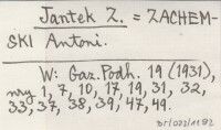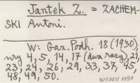 Jantek Z. ZACHEMSKI Antoni Gazeta Podhalańska 14 (1926), nr 23, 30 (2x), 39, 45 (2x), 46, 47, 48, 51, 52.