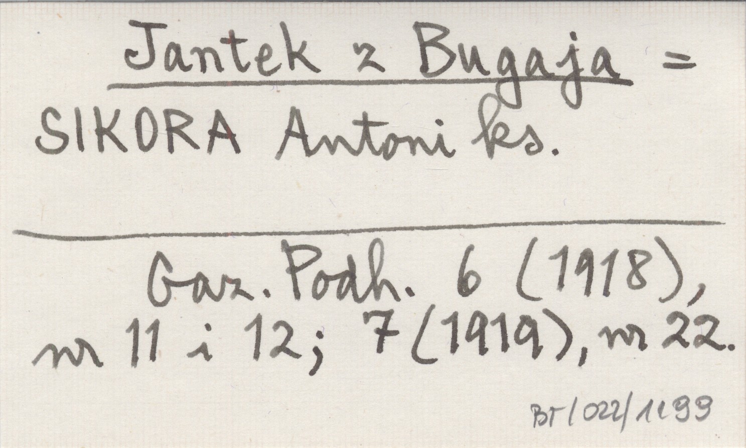 Jantek z Bugaja SIKORA Antoni ks. Gazeta Podhalańska 6 (1918), nr 11, 12; 7 (1919), nr 22.