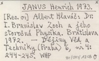 JANUS Henrich 1973 Albert Hlaváč: Dr. I. Bronislav Zoch a jeho storočná Physika. Bratislava 1972.