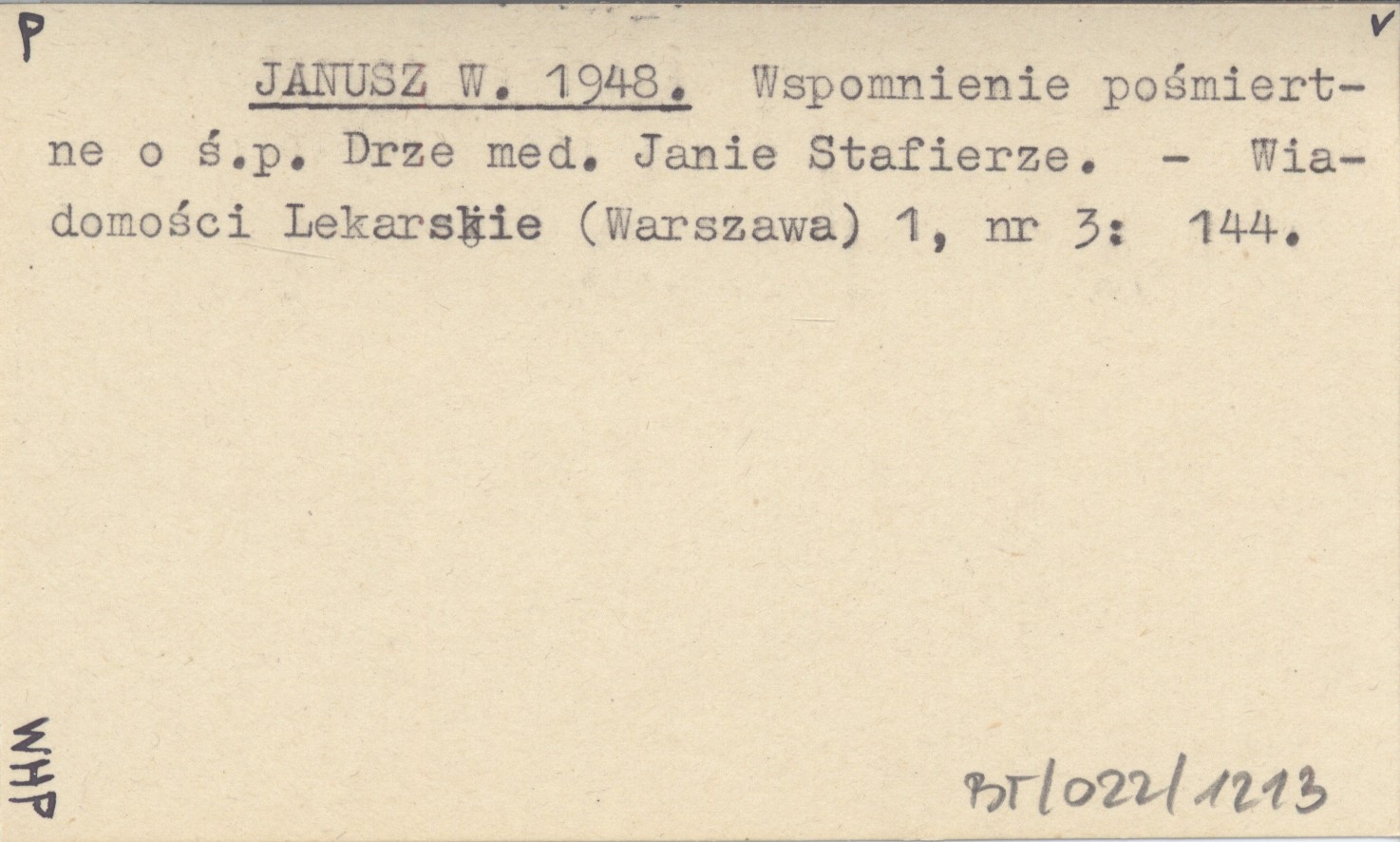 JANUSZ W. 1948 Wspomnienie pośmiertne o ś.p. Drze med. Janie Stafierze.