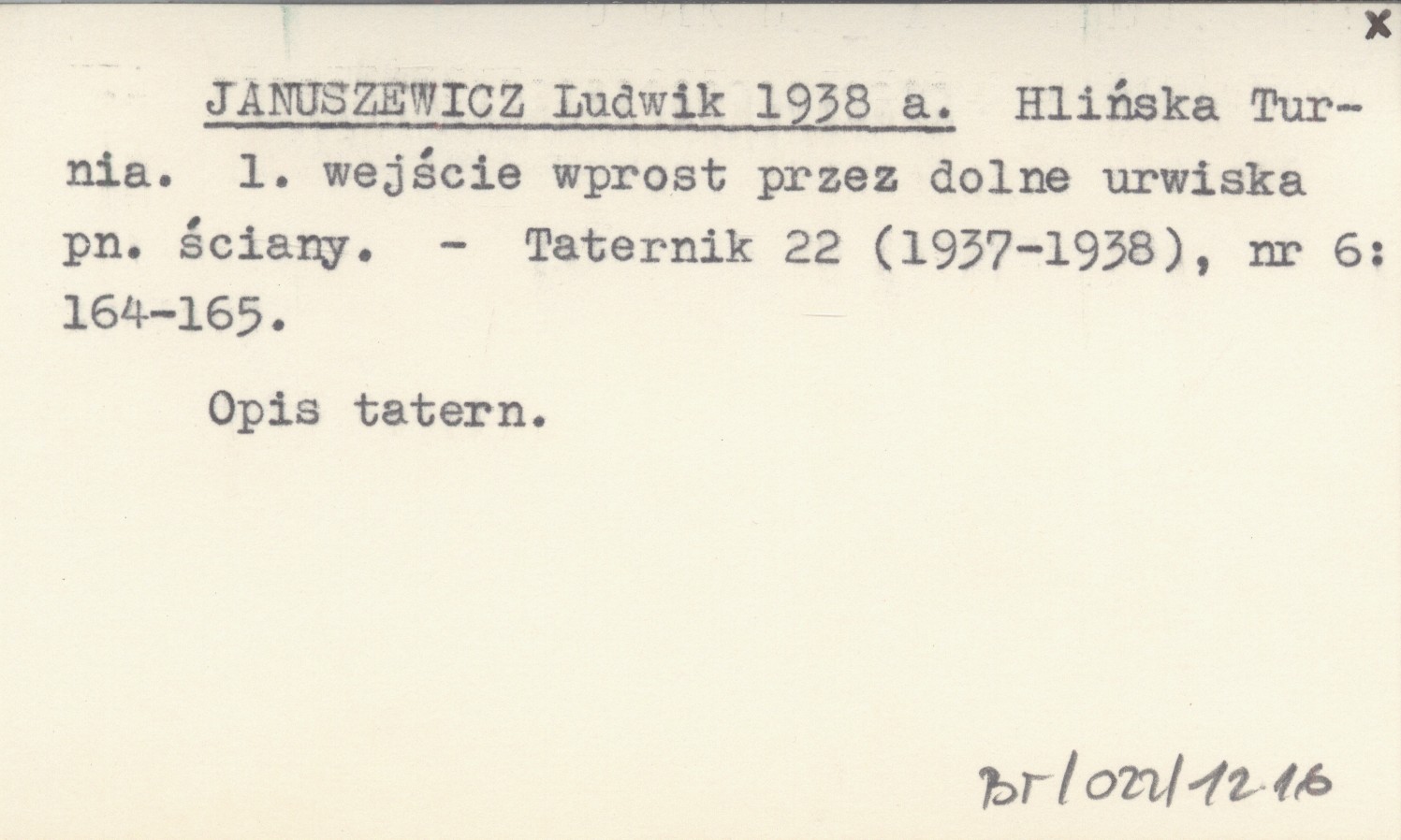 JANUSZEWICZ Ludwik 1938 a Hlińska Turnia. 1. wejście wprost przez dolne urwiska pn. ściany.
