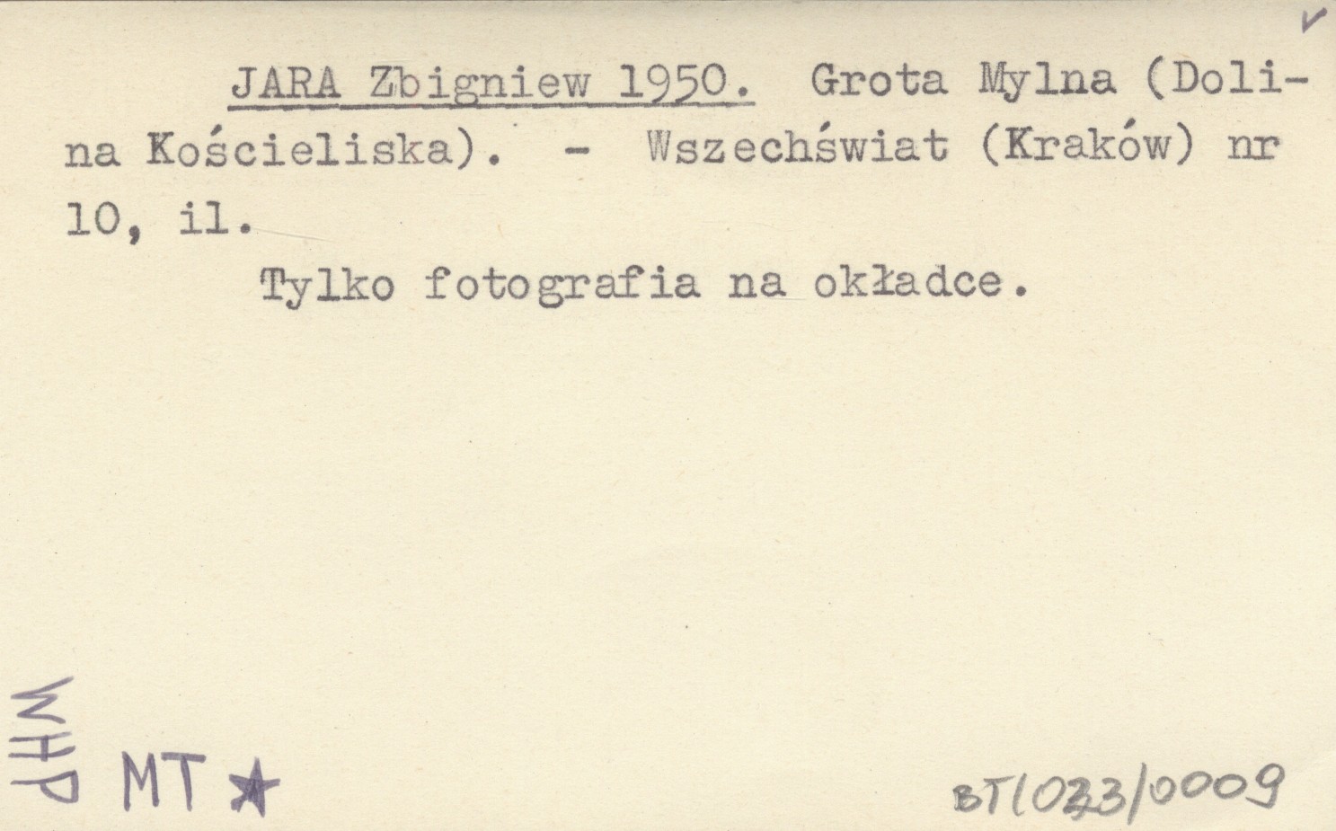 JARA Zbigniew 1950 Grota Mylna (Dolina Kościeliska).