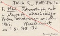 JARA Z. MARKIEWICZ, F. ; 1968 Zdrowotność ryb w stawach Tatrzańskiego Parku Narodowego w roku 1967.