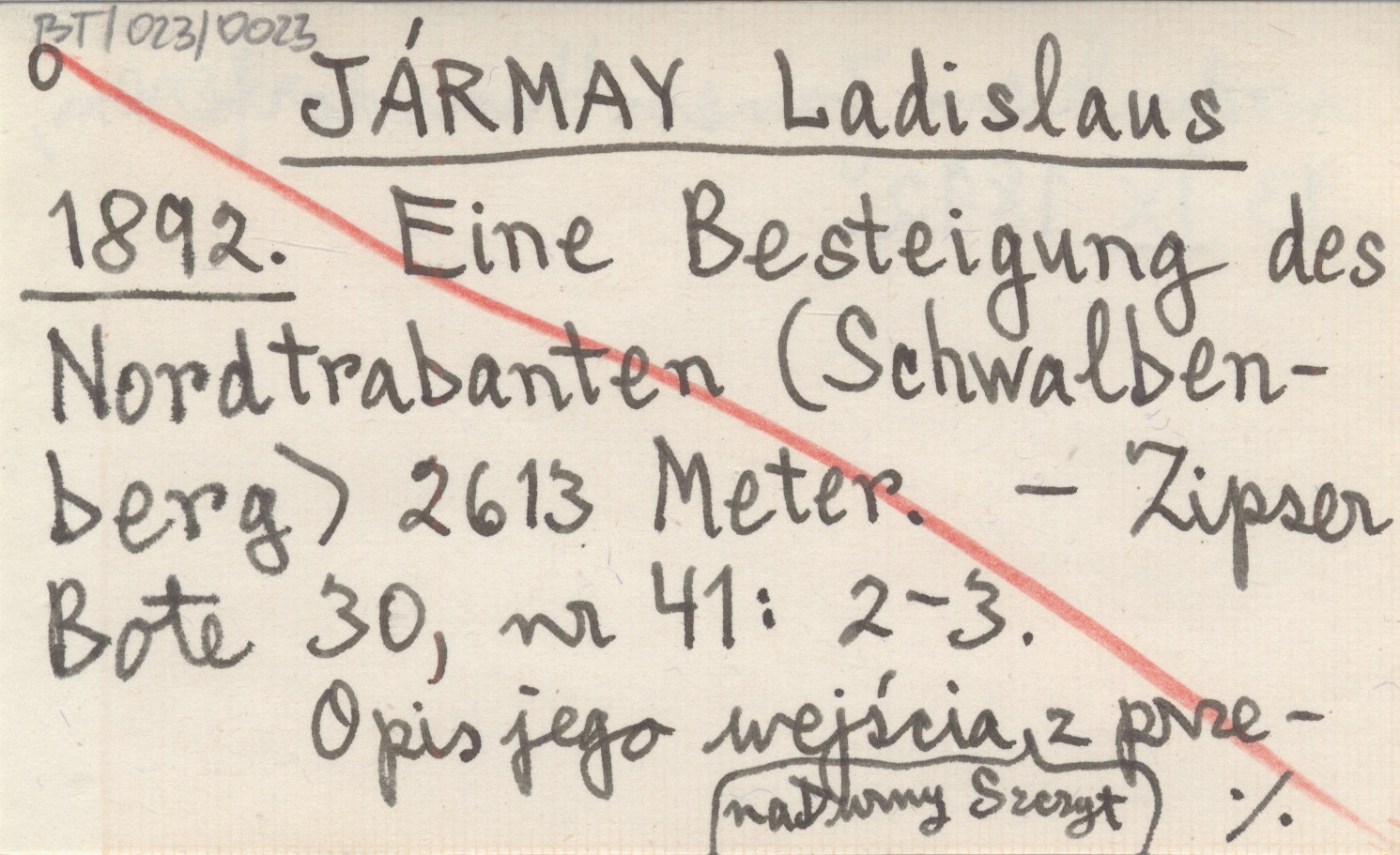 Zipser Bote, 17, 30, nr 41: 2-3. Opis jego wejścia na Durny Szczyt z przewodnikiem Janem Hunsdorferem, 13 IX 1892. Toż po węgiersku w Turisták Lapja 4 (1892): 329.