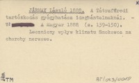 JÁRMAY László 1888 A Tátrafüredi tartózkodás gyógyhatása idegbántalmaknál.